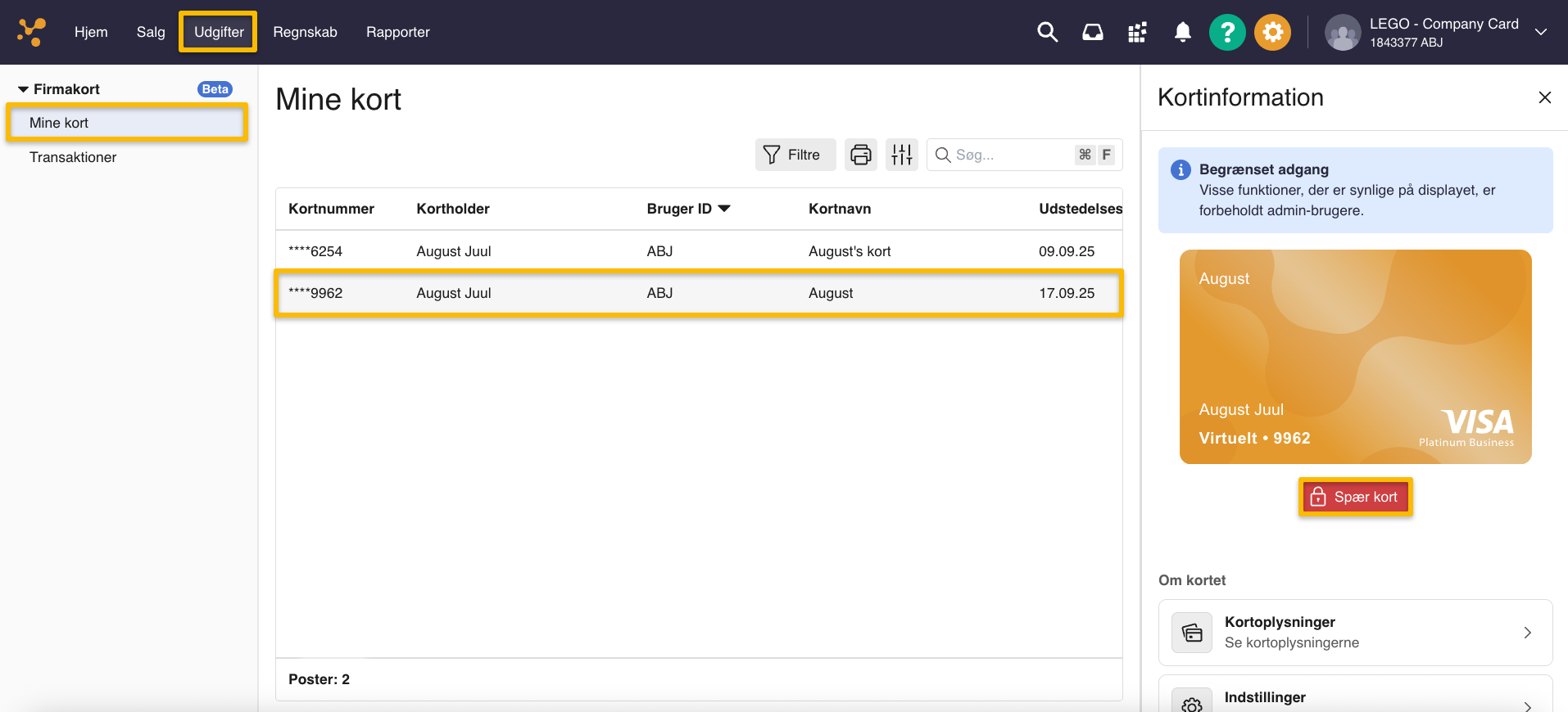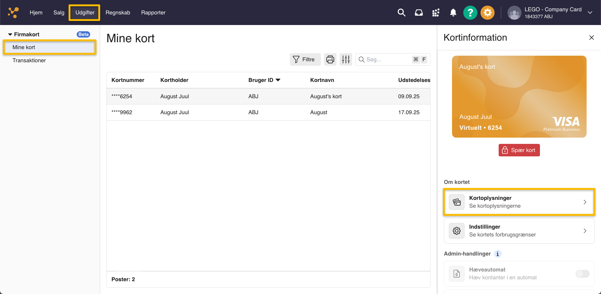 Arbejd med Firmakort som Normal-/Udgiftsbruger