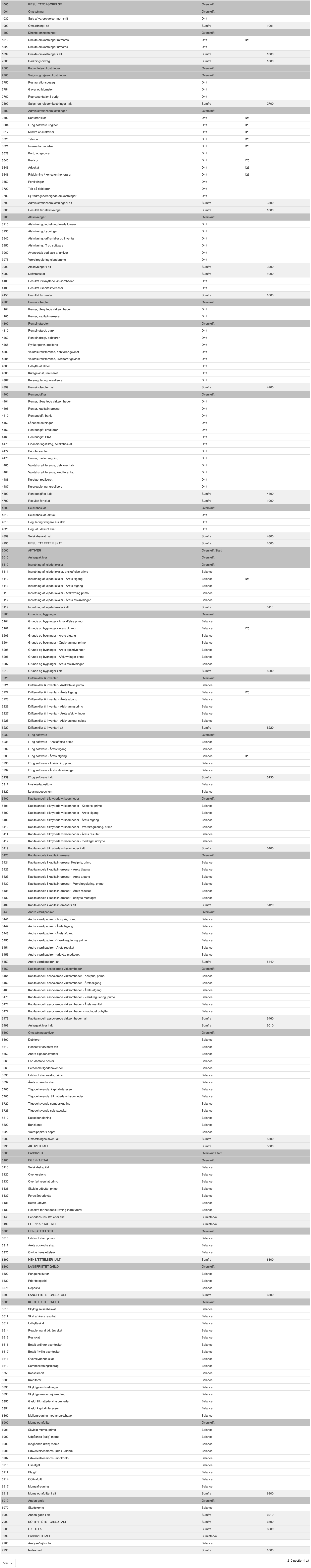 Her kan du se den kontoplan, der følger med i standardopsætningen "Holding selskab - med drift".
