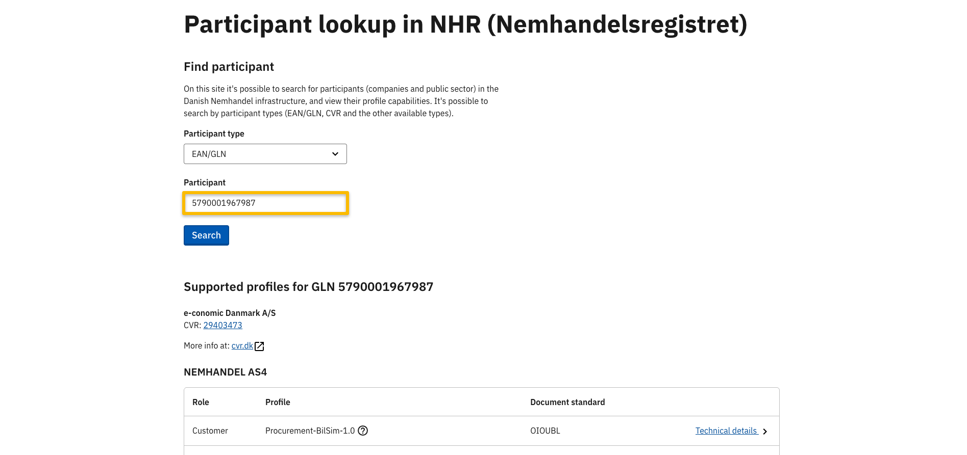 NemHandel registeret indeholder alle virksomheder i Danmark som har registreret et CVR-nr, P-nr. eller EAN-nr. til modtagelse af e-faktura.