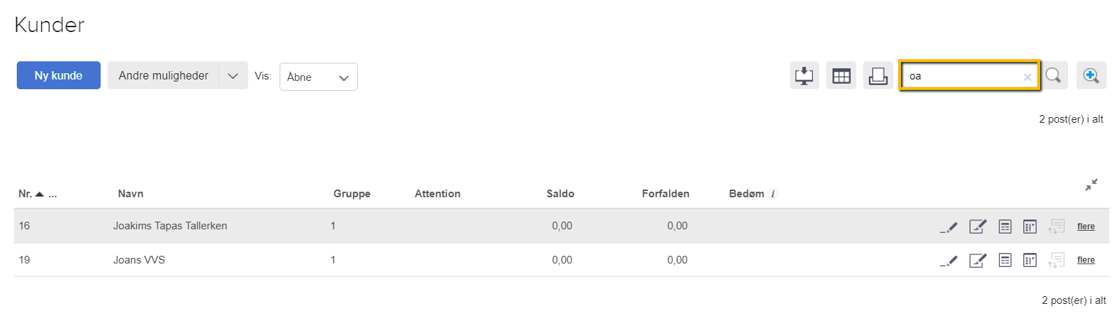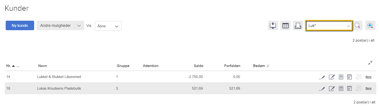 Du kan søge på bogstaver eller du kan søge på hele ord, f.eks et kundenavn i dit kundekartotek. Du kan også søge på dit kundenummer.