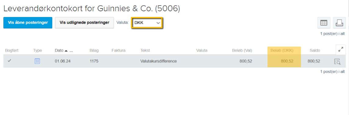 Denne kan ses på samme måde som andre valutadifferenceposteringer, da alle systemposteringer vedrørende valuta altid dannes og vises i grundvalutaen.