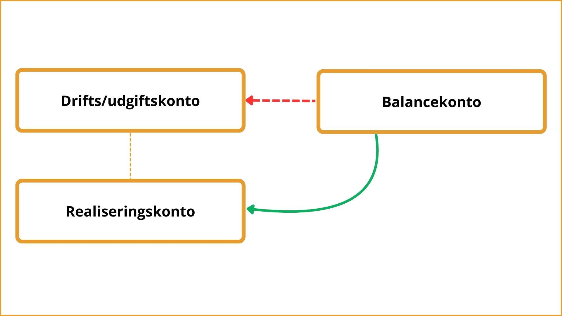 Når du indsætter en realiseringskonto, vil systemet automatisk anvende denne "ekstra" konto, når det periodiserede beløb skal posteres. Dette indebærer, at driftskontoen ikke påvirkes af periodiseringen, og at periodiseringsforløbet i stedet sker mellem balancekonto og din realiseringskonto.