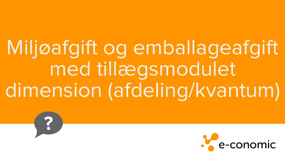 Når du opretter/redigerer din vare skal du angive en emballagesats og en miljøafgift i %. For at e-conomic kan beregne en miljøafgift, skal du huske også at have angivet en vejl.pris. (Miljøafgift beregnes således: antal * vejl.pris * afgiftssats).